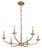 6 Light Chandelier in Ashen Gold with Hammered Arms and Canopy and Clear Faceted Crystal Accent Bobeche